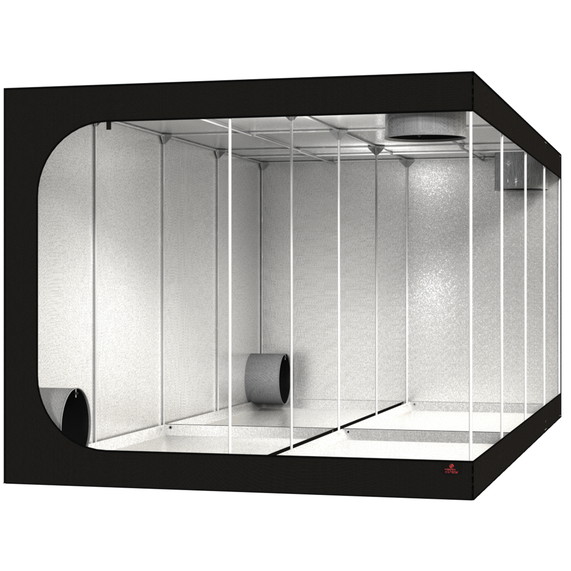 The Dark Room has all the benefits of our Dark Street, and a lot more. It is made with an indestructible Ø25mm Stainless Steel structure for the highest durability of the market. You can optimize your ventilation thanks to the included Ducting Flange system. It also offers 360° openings for an easy access to your plants, and possess a super-strong fibered liner Water Tray.